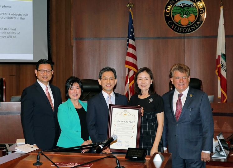 OC 수퍼바이저 위원회가 지난달 26일 샌타애나 카운티 청사에서 열린 정기회의에서, 위원회 미셸 박 스틸 부위원장의 주도로 대한항공 최덕진 상무에게 커뮤니티 봉사에 대한 표창장을 수여했다.