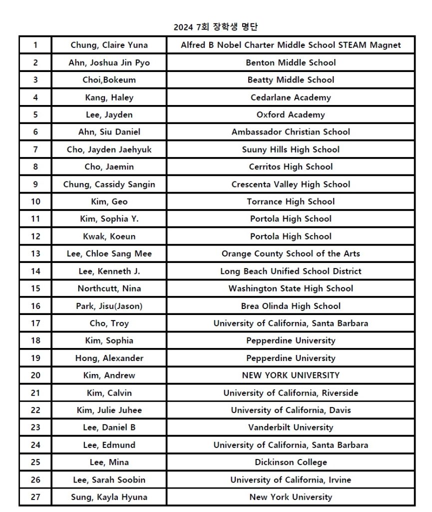 지난 7월17일 2024 KITA Scholarship Award Ceremony 행사 사진들입니다. 위 사진을 클릭하시면 행사 사진들을 확인하실 수 있습니다. Lee,Sarah Soobin/UC Irvine 대학원 (KBS America 추천) Hong, Alexander/Peperdine University (Allmerits Financial 추천) * 본인과 관련없는 사진을 다운로드 받거나 무단 사용시 법적인 처벌을 받을 수 있습니다. * You may be subject to legal penalties for […]